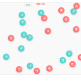 国語小学部3段階を想定。50音表のひらがなを押すと,ひらがなが一定時間だけ消え,カタカナが表示されます。カタカナを学習中の人が,ひらがなとカタカナの文字の対応を確認するための,動く50音表のようなイメージです。教示用にも自学用にも活用できます。