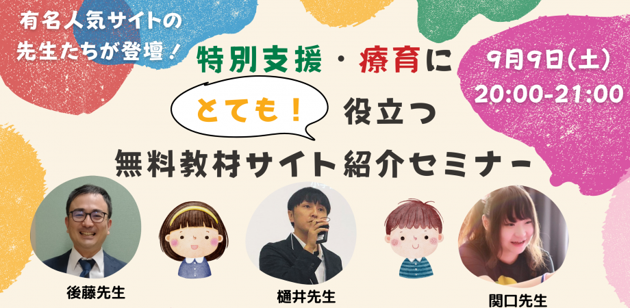 特別支援・療育にとっても!役立つ無料教材サイト紹介セミナー 有名サイトの先生たちが登壇します!