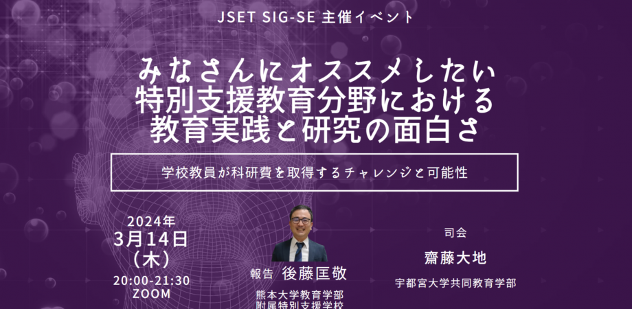 そのJSETの中で,特別支援教育に関するグループ(SIG-SE)が立ち上がることになり,そのキックオフイベントでお話しさせていただくことになりました。