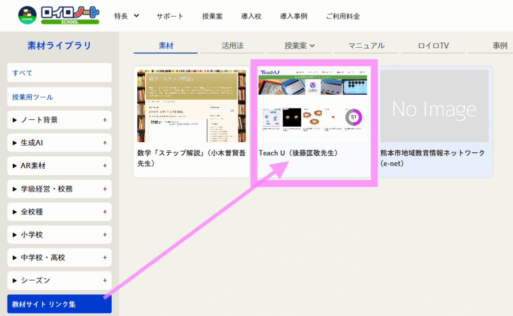 Teach Uが紹介されているロイロノート・スクールの「素材ライブラリ」がリニューアルされました